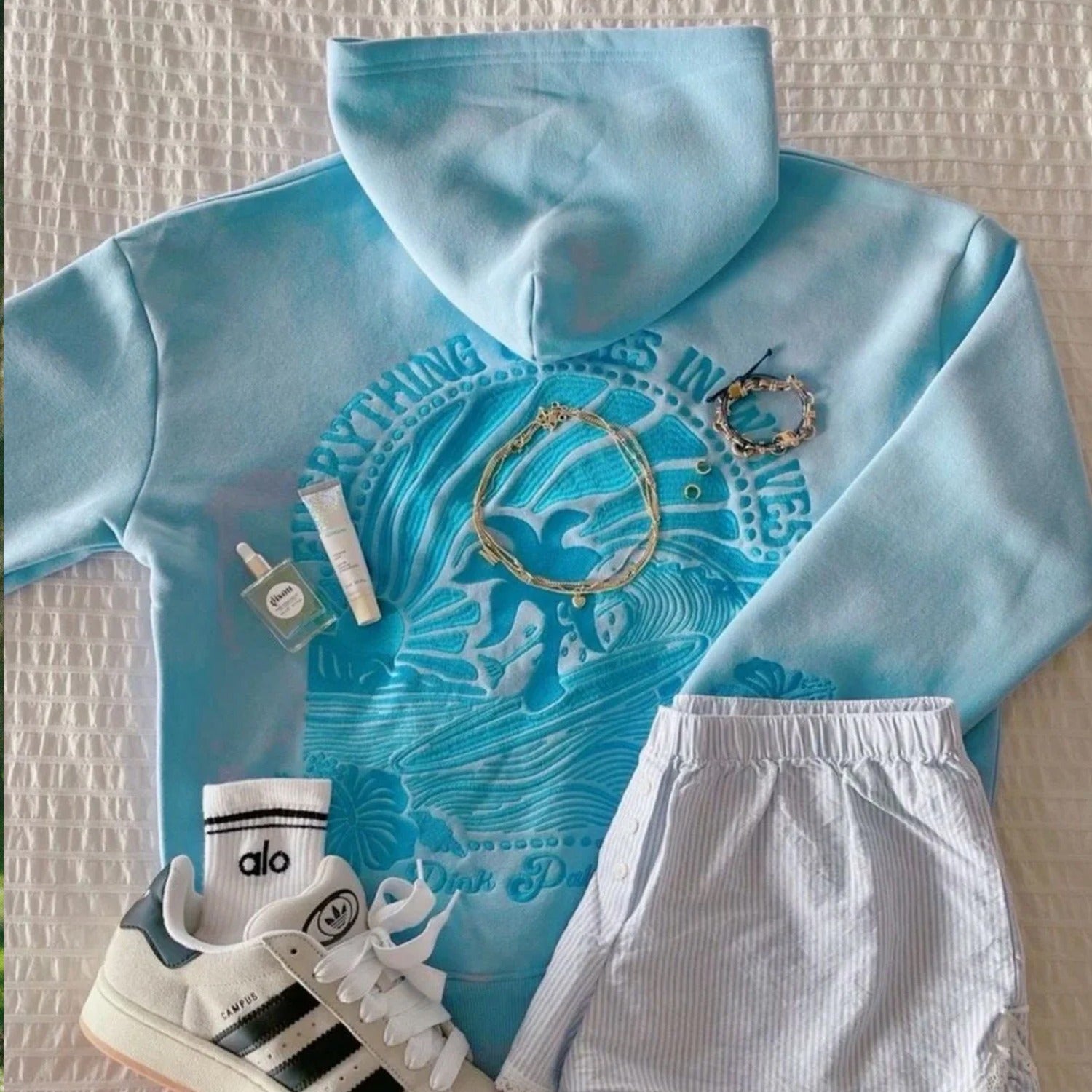 The "Everything Comes in Waves" Oversized Hoodie is crafted from top-quality fabrics, while having an exquisite embroidery art that celebrates all of life's ebbs and flows.